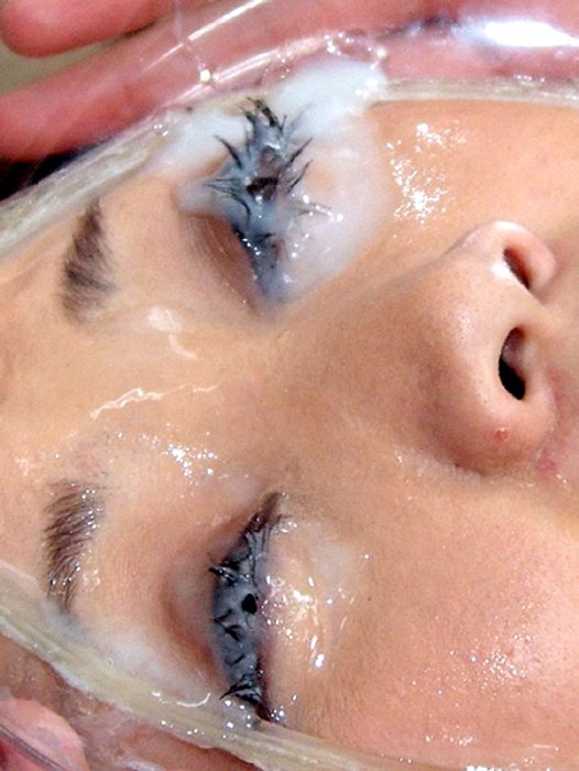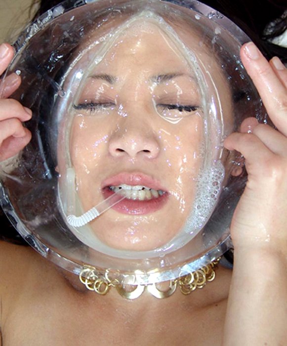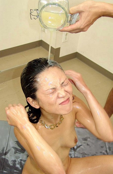 ザーメンを顔髪全身に塗りこみ、