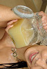 Being the crazy cum lover that she is, Mari spread the cum all around her face before it was time for the jar.